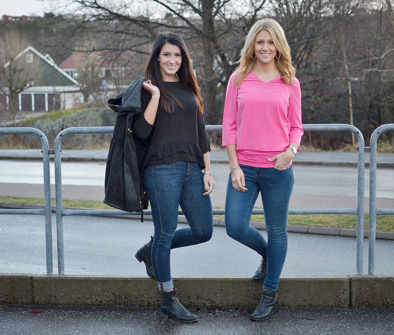 Ja härliga vårplagg är det som kommer nu hela tiden och det är plagg som man kan börja ha nu och självklart hela våren framåt. * Jennifer har på sig nya fina toppen med volangkant nertill och fina vårjackan i snygg parkasmodell med fina detaljer. * Therese har på sig fina toppen som går omlott över ryggen som verkligen är stor trend nu, snyggt att ha linne i samma färg som här eller bryta av och ha tex svart eller vitt under om man vill ha mer kontrast.