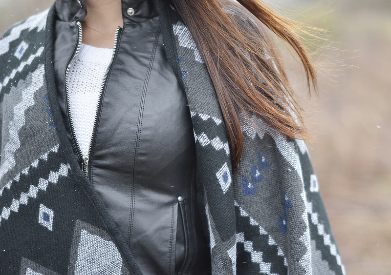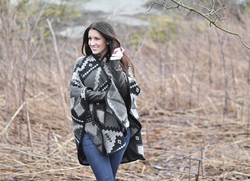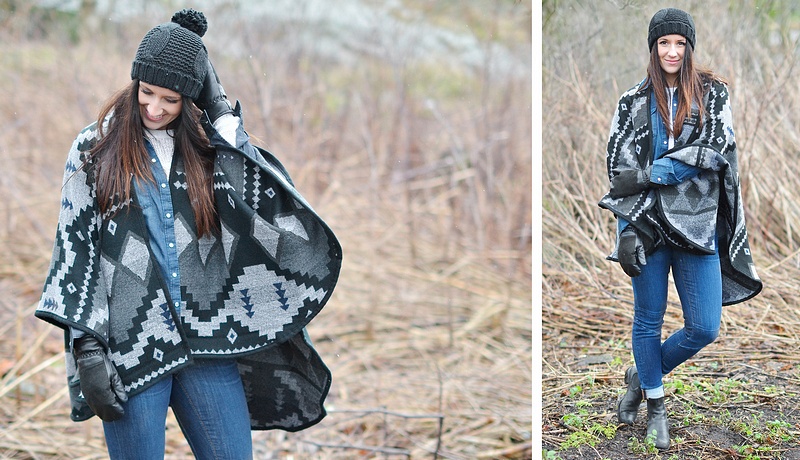 Ja ett av vårens viktiga trendplagg är den mönstrade ponchon och här visar Jennifer den fantastiskt coola modellen "Vitrine" från Vila som vi har inne nu. Suverän modell att ha över skinnjacka/jeansjacka eller bara över tröja när vårvärmen är här. På översta bilden har Jennifer även nya snygga jeansskjortan "Jdywyre" med geena-tröjan över. Mössan är fina "Myra" (99 kr) och vantarna är mina favoriter "Emira" som jag själv har dagligen nu.