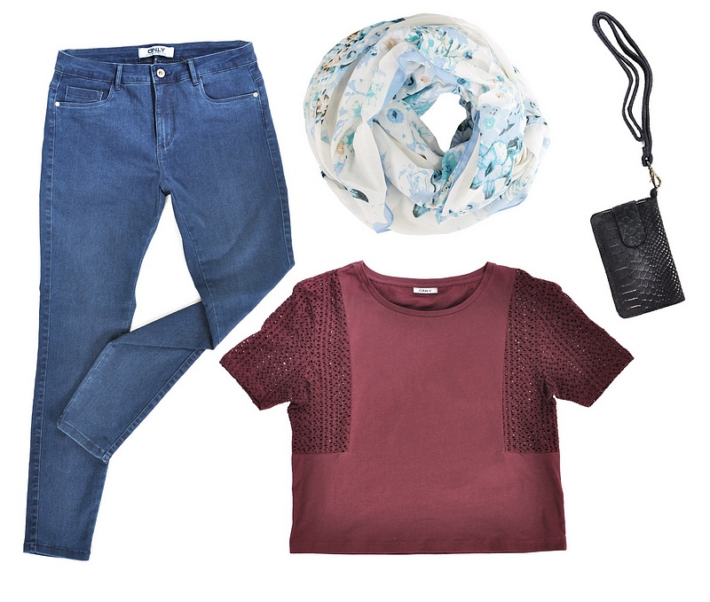 Ajlajk-halsbandet som det kom på påfyllning av nu i veckan här, jeansen är "Skinny Reg Soft".