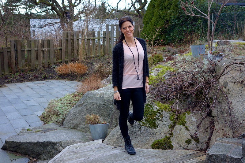 Jag har på mig nya tishan som kommer upp i morgon som jag själv blev helkär i så jag har tagit både den här i aprikos och en i vitt. Jeansen är suveräna "Superfix" och koftan favoriten "Perfect" som jag har i både kort och lång modell - rekommenderas verkligen. Halsbandet är från Ajlajk och fler är redan beställda så det blir påfyllning i början av veckan nu av både halsband och armband.