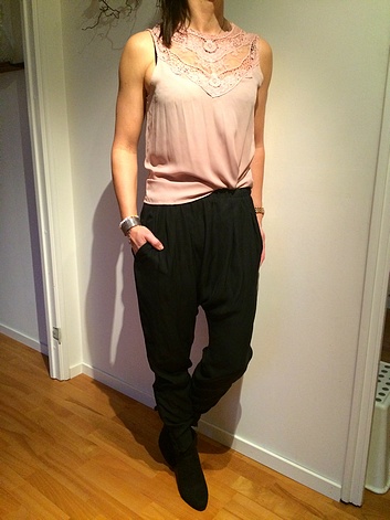 Har på mig mina älskade haremsbyxor "Nea" och ärmlösa blusen "Onlsia".