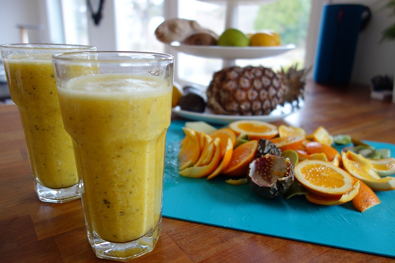Ja om ni märkt det tidigare så är jag verkligen helt förälskad i min blender. Vardagsmorgnar startar vi alltid med en smoothie på bär m.m och helgfrukosten startas alltid med en stor juice och i dag blev det med apelisn, passionsfrukt, kiwi, melon och lime - sååååå himla gott=D
