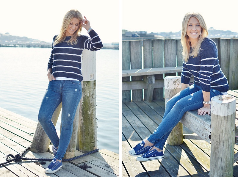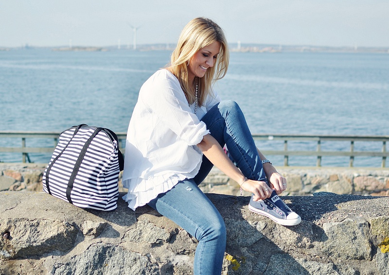Ja nu närmar vi oss den sköna vårvärmen och då är det ju alltid härlig med den fina marina looken som verkligen andas vårkänslor=) Här visar Therese fina outfits vid havet: på översta bilderna har hon omtyckta Ajlajk-toppen "A253", suveräna jeansen "Onlultimate Reg" och suveräna Ajlajk-halsbandet "J50". Väskan är omtyckta modellen "Psleona" som är perfekt både som weekendbag och strandväska. På nedersta bilden här ser ni suveräna tröjan "Onltulla" som är en perfekt modell till alla jeans och vida byxor nu då den är snyggt nätt i modellen, kanonpris också 239 kr.