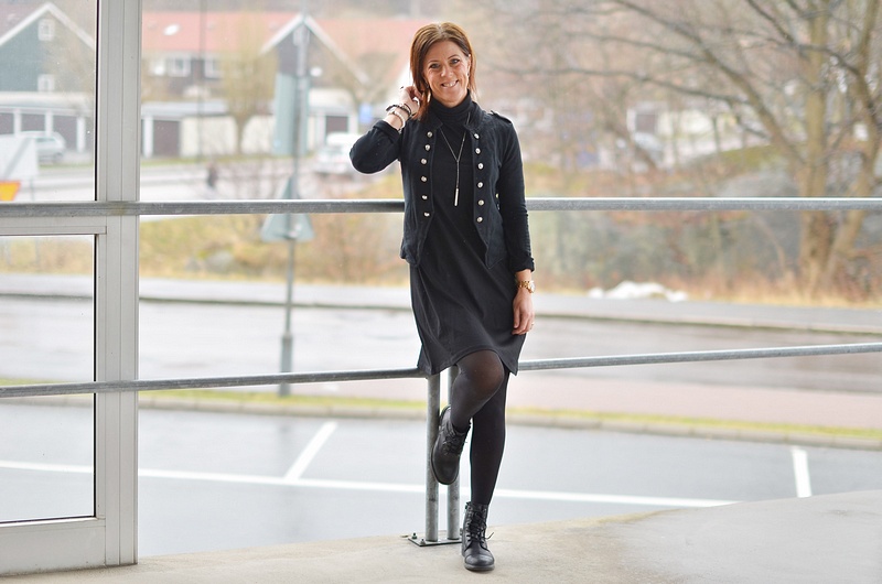 Jag har på mig fantastiska poloklänningen "Viofficiel" och storsäljaren "Anette"-jackan som jag verkligen älskar.