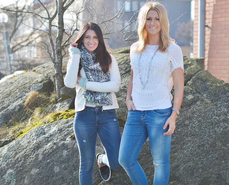 Ja hjälp vad mycket snyggt det kommer även i dag (mars har verkligen startar helt fantastiskt bra i kollektionsväg;P). * Jennifer har på sig fina nya Vila-sjalen "Vibutterflies" som kommer i dag tillsammans med sköna tröjan "Vmvasanta", jeansen "Onlultimate Reg Jeans" och "Onlferry"-jackan. * Therese har på sig nya suveräna "Breeze" tillsammans med de SUVERÄNA jeansen "Onllise" som kommer i dag också. Dessa jeansen är alltså uppföljaren på "Lizzy" som är i samma modell som chinosen "Onllise".