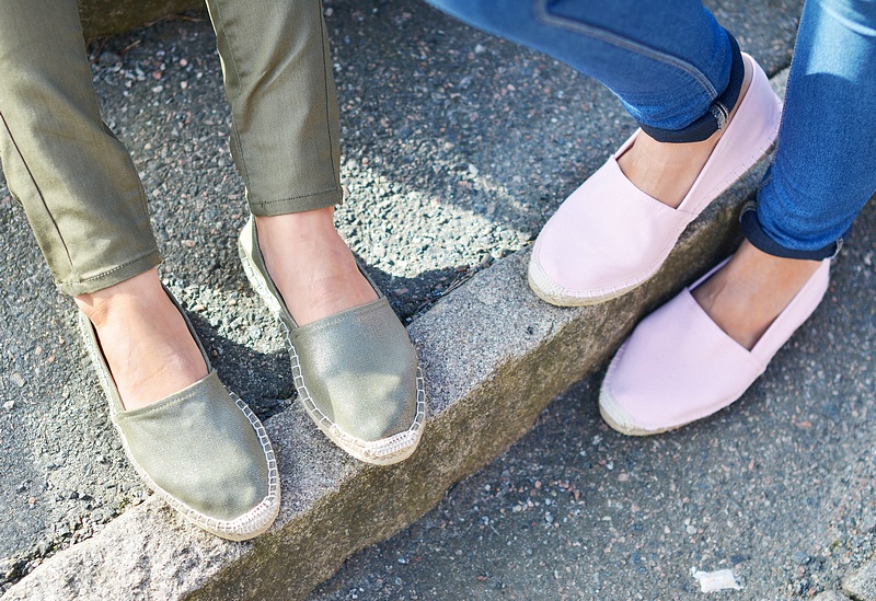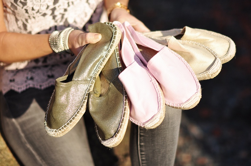 Ha ha ha, vågar knappt starta min mening men jag säger som jag sagt de senaste dagarna... det kommer in sååå himla mycket snyggt i dag så ni måste bara vara med här nu kl 11:00. Som ni ser så kommer alltså tre nya färger på espadrillos och dessa är mer normala i storleken så här tog jag och tjejerna vår normala storlek, ligger man mellan två storlekar så kan man gå upp en storlek här. Creme och army är med fin metallicskimer vilket ger en cool glammig look, den rosa är i en superfin nyans so verkligen andas sommar=) Vi är alla här veliga om vilka färger vi ska ha för man vill ju ha alla, jag har börjat med de cremefärgade och kommer även norpa de i army tror jag=)