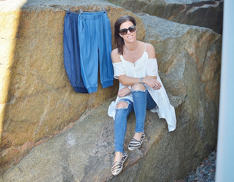 Easy-byxan (Ikat) så jag har nu tagit mig ännu ett par av min favvo-byxa (vågar inte räkna alla Easy-byxor jag har i min garderob nu), toppen jag har på mig i dag är fina spetstoppen "