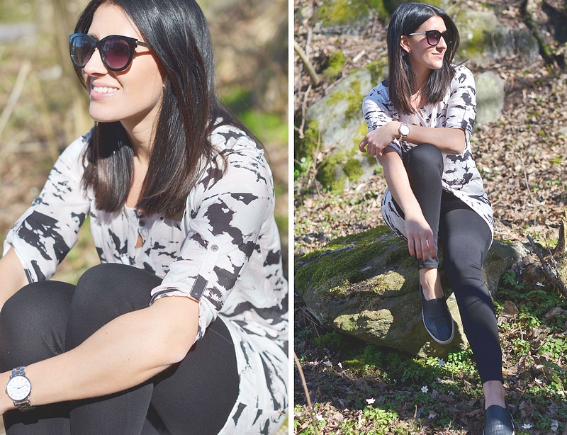 Här visar Jennifer suveräna 7/8-längden som vi har inne nu i både svart och i vitt, pris 349 kr. Coola mönstrade tunikan här är suveräna "Chalena".