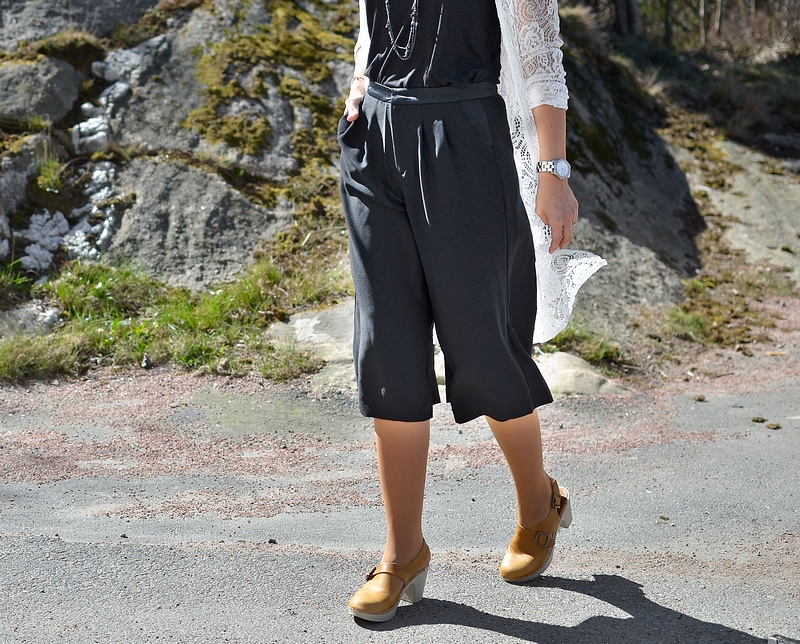 Den här säsongen ser vi mycket av cooola trendbyxan i culotte-modell som verkligen är helrätt nu. Vi har inne suveräna modellen "Onlkaty" som Therese visar olika kombinationer till här: Fina ajlajk-linnet "A233" ser ni på översta bilderna och sedan ser ni snygga längre "Vialiko" i spets med fransar tillsammans med Onlgold"-linnet (suveräna linnet Vigyras är perfekt också).