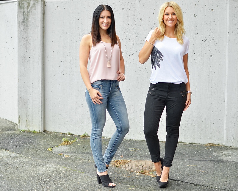 Sköna plagg som är perfekta även dessa småkyliga sommardagar kommer in i dag... * Jennifer har på sig superfina linnet med tunna axelband, jeansen är storsäljaren "Olivia Denim". * Therese har på sig nya printet på omtyckta "Emma"-tishan och den grymt sköna byxan "Fame" som är ett mellanting mellan "Cila Pant" och "Olivia Non Coated" så en suverän modell som vi verkligen rekommenderar - kanonpris 299 kr också.