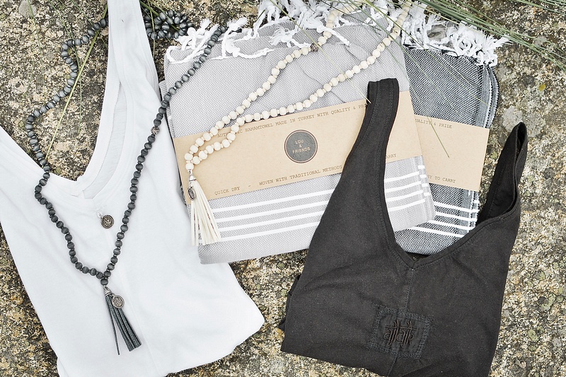 Här ser ni några av mina favoriter med dagens underbara Ajaljk-linne (som både jag och Therese norpat själva redan), "J3"-halsbandet och suveräna "Hamam"-badlakanen i grått och svart (dessa färger har jag och Kalle tagit och barnen valde varsina turkosa till semestern).