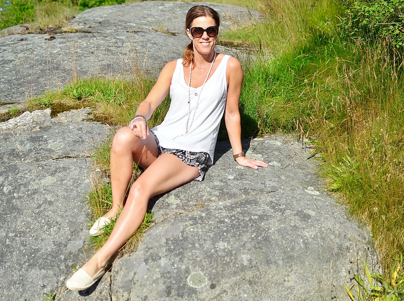 Jag har på mig nya Ajlajk-linnet, suveräna halsbandet "J3" (har nu två stycken färger av den här favoriten) och suveräna Easy-shortsen. Ni missar väl inte att fylla på sommargarderoben nu med underbara Easy-shortsen som finns i massa härliga print, samma kanonpris som alltid 99 kr.