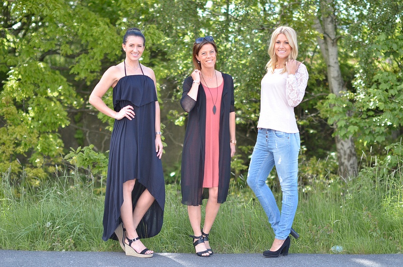 Härliga plagg till både stranden, sommarfesten och snyggt till vardags kommer in här i dag. * Jennifer har på sig coola maxiklänningen från Vila som är i snygg high and low-effekt, man kan både ha den som tubklänning eller halterneck. * Jag har på mig nya sommarklänningen i omtyckta Kikuno-modellen som är med djup ringning i ryggen, pris 189 kr. Långkoftan är storsäljaren Mansi som det blir påfyllning av i vitt nu kl 11:00. * Therese har på sig fina Ajlajk-toppen "A 282" och "Objmille"-jeansen.