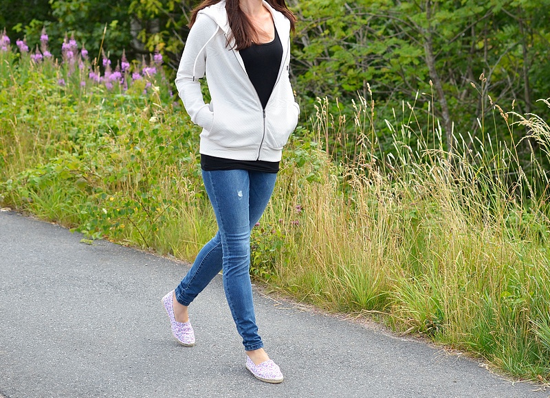 Här ser ni några av dagens fina plagg som kommer upp här kl 11:00 Jag rekommenderar verkligen sköna hoodiesen som är fint quiltad vilket ger en snygg look, nu kommer även nytt print på omtyckta Haisha espadrillos. Här har Joline på sig sköna OnlUltimate-jeansen med slitningar till nya hoodiesen "Onlnina".