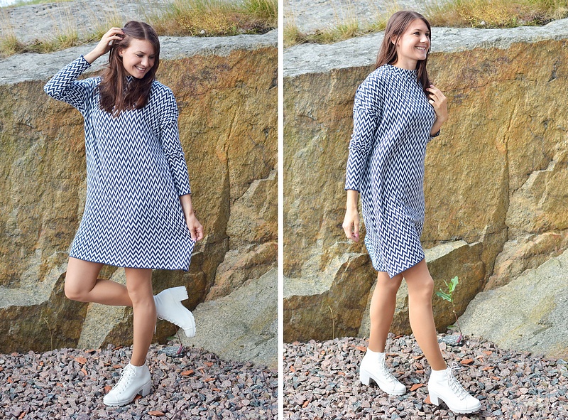 I dag kommer den här heeeelt fantastiskt fina klänningen från Vila som är så himla snyggt i modellen med turtleneck-krage och trendiga zickzack-mönstret. En tunn mjuk finstickad kvalitet som man kan ha nu och såklart hela hösten.