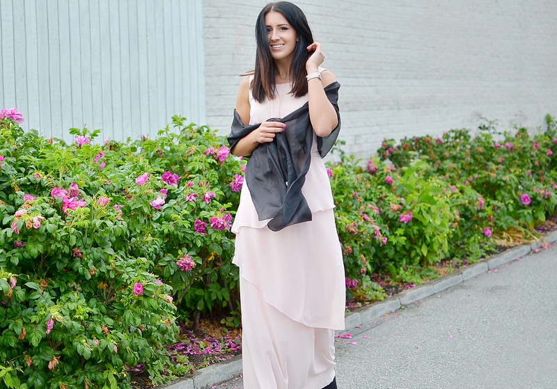 Jag har på mig den heeeeeeelt fantastiskt fina klänningen från Vila som många säkert har väntat på från kollektionsmötet i våras. Ni ser även fina sjalen som är i 100% silke och perfekt att ha över klänningar till fest. Missa nu inte denna ljuvliga klänning och andra fina nyheter som kommer upp kl. 11.00!