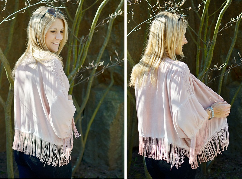 Therese har på sig fina klänningen "Onlfairy" som nu kostar 149 kr. På andra bilden ser ni snygga kimonon "Objponcho" som finns på rean för 249 kr.