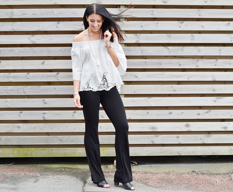 I videon ser ni fina toppen "Vmcathrina" med den trendiga utsvängda ärmen med fina spetsdetaljer. Ni ser även fina halsbandet "Vmsanne". Snygga byxorna "Objdelta" fåååår ni bara inte missa!!! Vår fotograf Ellika har redan tagit ett par och själv funderar jag också på att ta ett par. Perfekt när man vill känna sig snyggt klädd men ändå vill ha en sköön outfit. Den randiga toppen med trendig "off shoulder" har jag redan själv hunnit norpa!