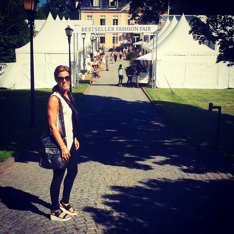 Nu är jag på plats här på modemässan i Stockholm. Solen skiner från en klarblå himmel så det är toppenväder för mässan som är mest utomhus som ni ser här. Får se hur varm jag är i mina svarta "OnlRoyal"-jeans när dagen är slut, tur att det är kneecut iaf så det blir lite luftigt;P