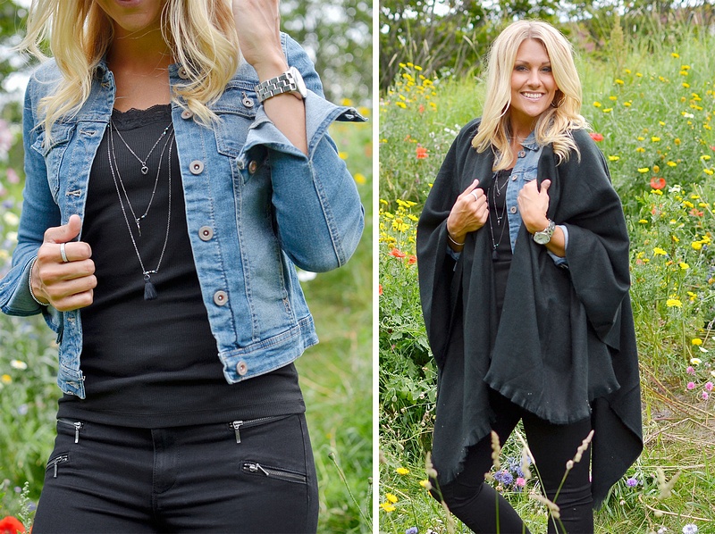 Ja i dag kom äntligen Westa-jackan in igen och nu i höstens look med nya knappar och snygg jeansblå tvätt. En jeansjacka är alltid en perfekt bas i garderoben då den går att variera mycket, perfekt att ha enkel som den är eller som komplement som ni ser här på bilderna på Therese. Suveränt att ha under höstkappan när det är kyligare ute eller bara som en snygg detalj. Ja som ni säkert redan märkt är ju trenden med poncho stor och det är ju helt suveränt plagg som värmer skönt och ger en cool look, här ser ni dagens nya "VmSolid". Jeansjackan "OnlWesta" är perfekt att ha under alla ponchos nu. Svarta byxan här är omtyckta "OnlRoyal Reg".