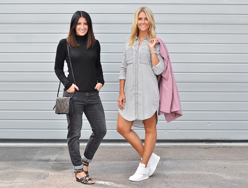 Jag hoppas verkligen ni är redo nu kl 11:00 för det är så mycket snyggt som kommer här i dag. Ja kappan här behöver väl ingen närmare presentation för den har ju snabbt blivit en av våra dunderstorsäljare här i år, kanonpriset 399 kr och den kommer i fyra färger (Therese har kappan själv). * Jennifer har på sig coola ribbade polotröjan från Vila som kommer i dag och nya väskan med små nitar framtill med flera suveräna fack invändigt. * Therese har på sig den grymt coola jeansskjortan "VmPipper" som jag själv går och klurar på här nu, känns perfekt både som klänning och till höstens alla snygga pu-leggings.