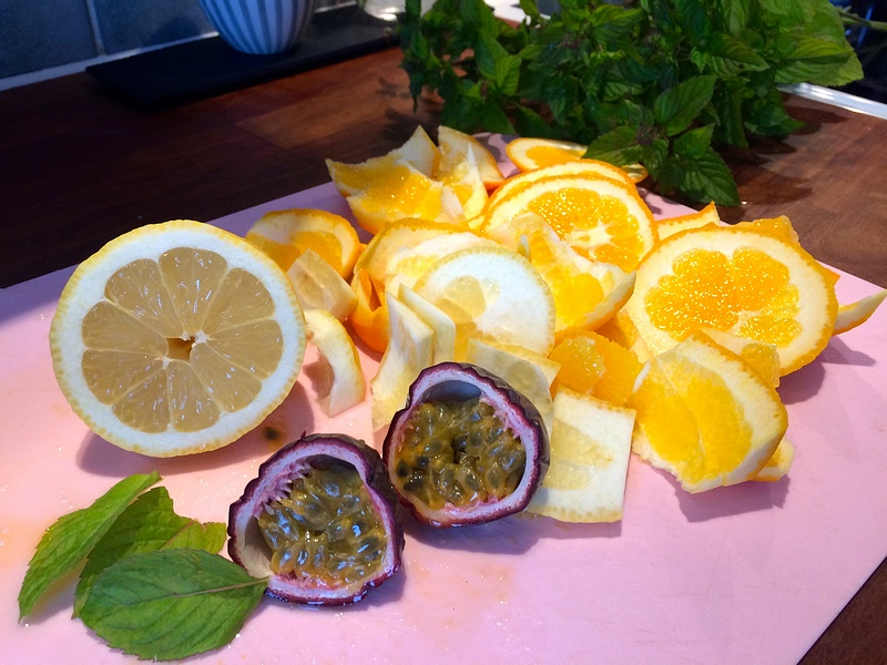 Jag älskar verkligen min blender och använder den dagligen, på vardagar startar vi dagen med smoothie och på helgerna då vi gör storfrukost så gör jag alltid juice. Min favoritkombo just nu är apelsin, citron, mynta och passionsfrukt - rekommenderas verkligen=) Myntan ger mycket smak så till två glas räcker det med bara några blad.