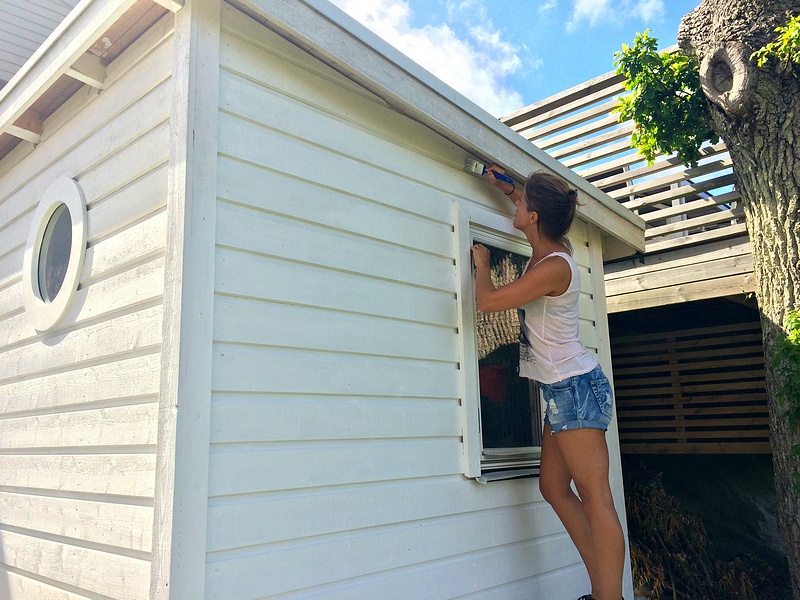 Ja i tre års tid har vi skjutit upp att göra sista strykningen här på vår friggebod så nu fanns det inge återvändo längre;P Skönt väder och med några nerladdade "sommar" -program att lysnna på så är det faktiskt riktigt mysigt att stå här och måla.