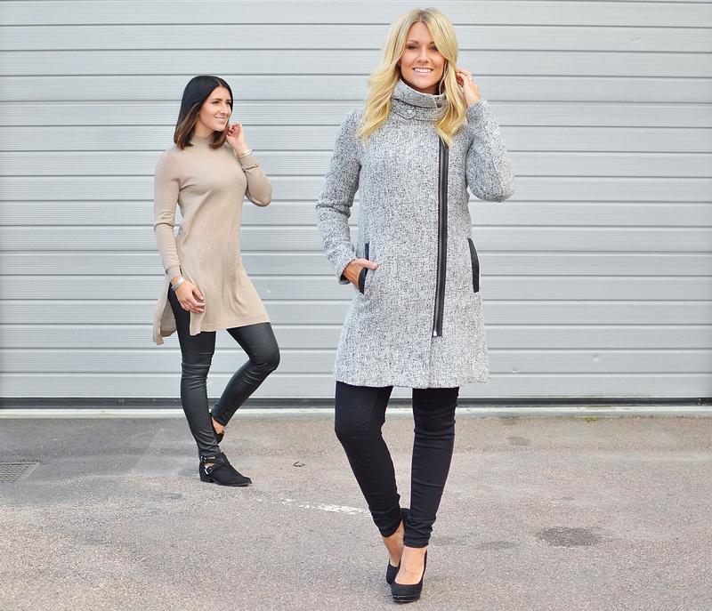 Ja i dag kommer det också in massa massa fint, vi är ju inne i starten av hösten då man behöver bygga upp sin höstgarderoben så det är verkligen många suveräna plagg som kommer in här dagligen. * Jennifer har på sig supersnygga turtleneck-tröjan med de coola höga sprunden på sidorna som är stor trend nu, perfekt till dagens snygga fakeskinnleggings. * Therese har på sig fantastiskt fina Ajlajk-toppen med den vackra chiffongryggen. Suveräna höstkappan "ObjNomi" ser ni här också och det är ju samma modell som vi hade föra året som vi sålde som tusan av då modellen är heeeelt fantastisk.