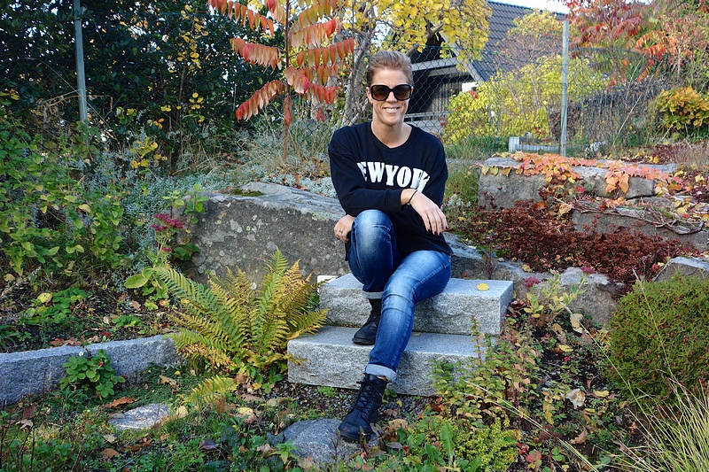 Härlig solig dag höstdag i dag så vi har haft en soft start här och nu är det dags att få undan utemöblerna och få lite fixande i trädgården. Skönt med en extra timme i dag, ni kom väl ihåg att ändra klockan i morse. Har på mig favvojeansen "OnlLise" som jag hoppa ska komma in nu i veckan, de har ju varit slut länge i många storlekar. Collegetröjan är sköna "VmElla" som jag bor i på kvällar och helger - sååå himla skön modell som är härligt oversized.