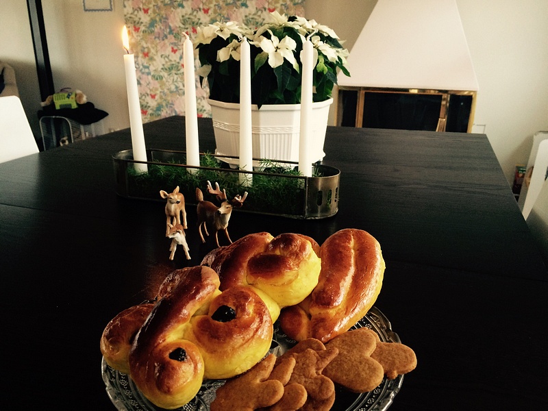Ja då har vi första advent i dag så det blev äntligen dags att smaka årets julbak med lussebullar och pepparkakor. Får se vad vi hittar på i dag, ev. åker vi till julmarknad på Gunnebo Slott om vädret tillåter eller så softar vi bara hemma. Ha en fin första advent i dag.