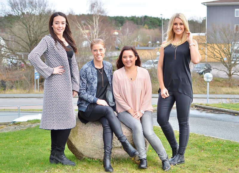 Ja här får ni se dagens fina plagg (på ett lite lugnare sätt än förra bilden;P). * Elin har på sig coola långkoftan från Vila. * Jag har på mig suveräna bomberjackan i sååååå skön kvalitet - rekommenderas verkligen! Toppen är "OnlLIa" och byxan är "ViCommit". Halsbandet är "Crystal" från Orelia som kommer upp i dag. * Charlotte har på sig superfina blusen "OnlEwan" som även kommer i fint blomsterprint, jeansen är grymma "Olivia" i grått. *Therese har på sig suveräna festlinnet "VmCona" som är i cool asymmetrisk modell - perfekt til julfesterna. Byxan är suveräna "ViCommit".