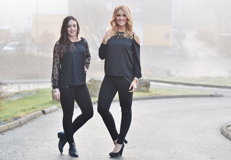 Ja i dag kommer det som sagt två helt suveräna festtoppar här som ni ser på tjejerna. * Elin har på sig fina spetstoppen "viGraceful" från Vila som man även kan ha som singoalla-modell. * Therese har på sig fina toppen "VmSelfie" med trendig öppen axel och fin spets upptill tillsammans med nya Object-byxan "ObjAimee" som också kommer upp i dag kl 11:00.