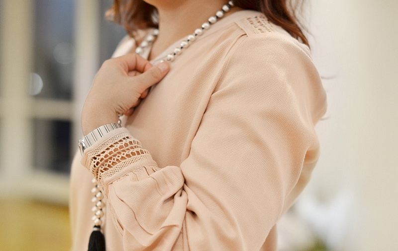 Ja i dag kommer det som sagt flera fina toppar och blusar. * Jag har på mig superfina Vila-blusen med vackra spetsärmen (får nog följa med mig hem i dag för den vara sååå fin på). Byxan är suveräna "ViCommit Coated Zip". Armbandet är coola "Lee Bracelet". * Elin har på sig fantastiskt fina blusen "VmTenna" med volangdetaljer som även kommer i army och aprikost. Suverän modell nu som man både kan ha snyggt till jobbet, en afterwork odyl.