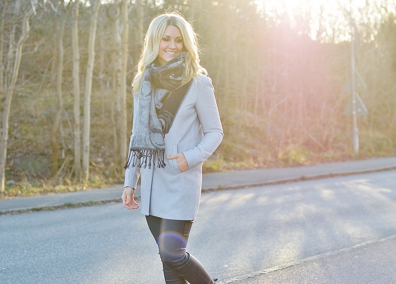 Ja nya fantastiska OnlSidney-kappan är verkligen sååå himla fin (vi är helt kära i den här på webshoppen då den är ännu finare i verkligheten). Här visar Therese den tillsammans med min favvohalsduk "PcVinifred" som jag har själv.