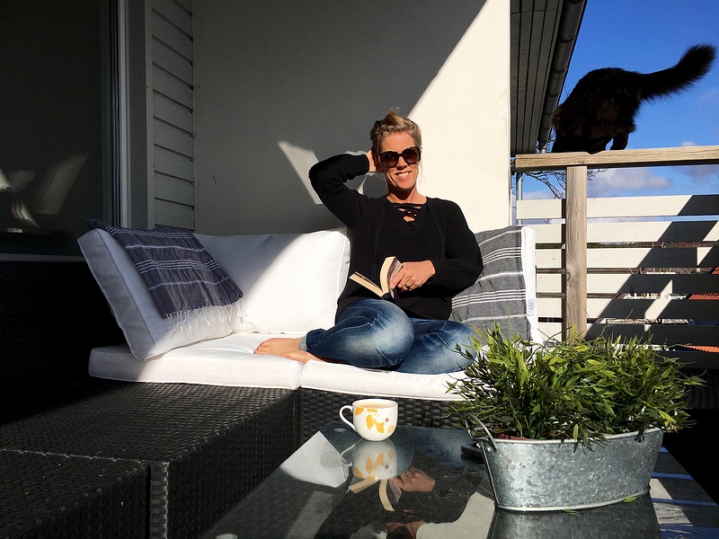 Dessa första dagarna med vårsol är såå himla sköna, på vår balkong är det lä så här kan man sitta ute när solen skiner och bara njuta. Så fort den försvinner blir det superkallt så man får flytta på sig allteftersom solen rör sig så man inte hamnar i skuggan. Även katten njöt av att få vara på balkongen och efter att ha balanserat omkring lite läskigt på balkongräcket ett tag så kom han till ro och la sig vid hamam-handduken =)