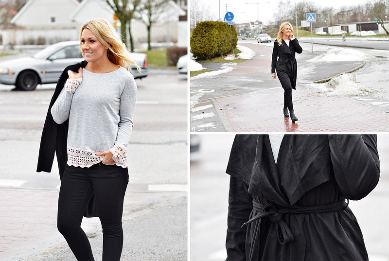Ja trenden med fakemocka har ni väl inte missat nu hoppas jag. Här visar Therese supersnygga Vila-kappan "ViSeila" som finns i både svart och i creme. Toppen är fina ViCentral med spetskant som även finns som cardigan (både med och utan spets).