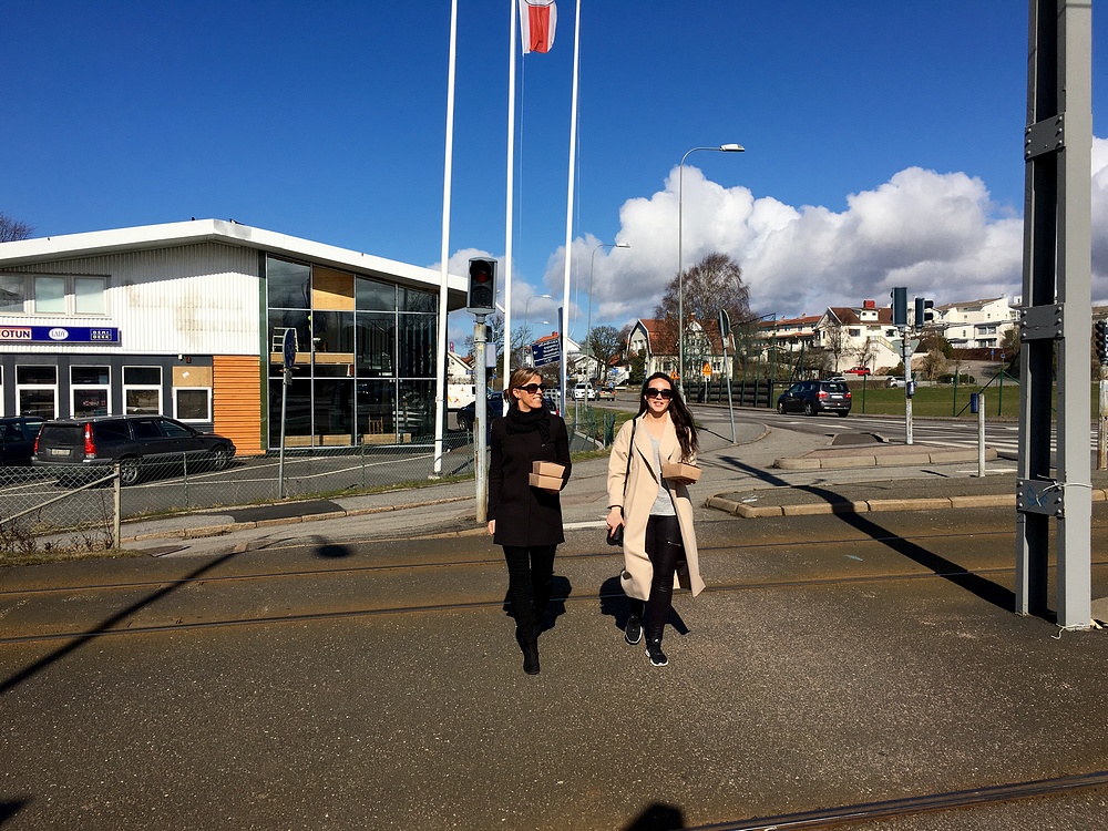 I dag gick vi till vårt härliga salladasställe och köpte lunch och passade på att njuta lite av vårsolen också. Jag har "OnlSindey"-kappan och Elin har fina Vila-kappan "ViResin".