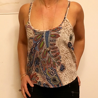 I går kväll var vi hos kompisar på middag och hade en mycket härlig kväll. Jag hade på mig nya linnet "StuSmart" som är i det fina paisleyprintet som jag har i både byxa och kimono och jag älskar verkligen snygga banden som går i kryss över ryggen här.