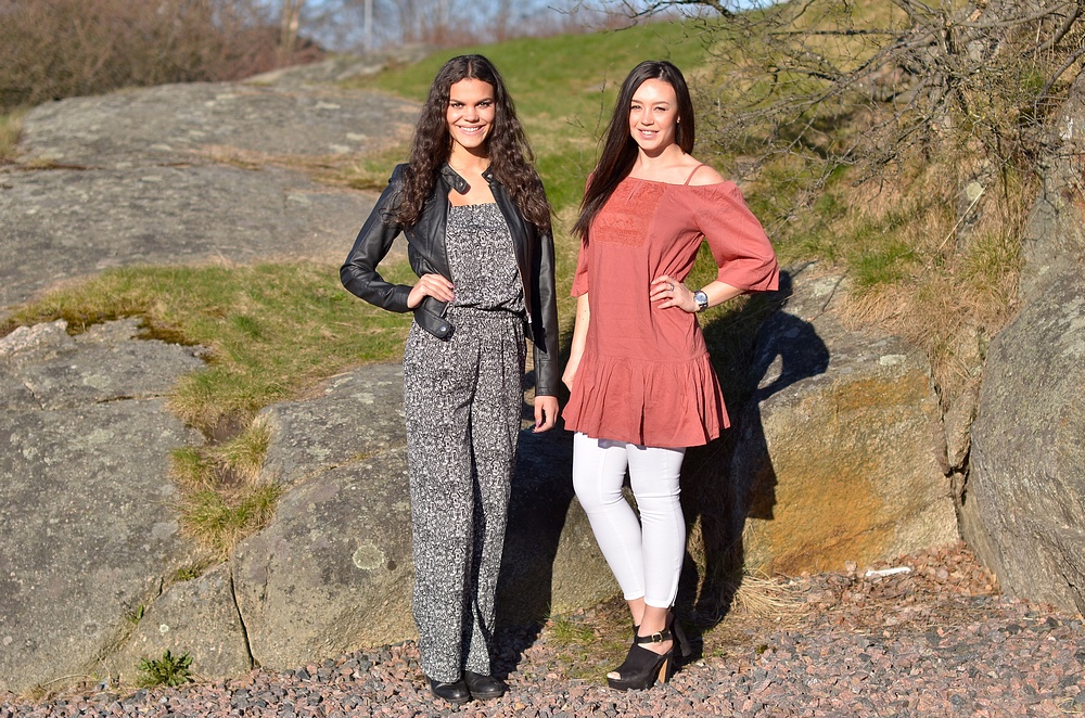 Ja i dag rekommenderar jag verkligen den coola bomberjackan som tjejerna har på sig här i snyggt paisleyprint. * Elin har på sig nya Vila-linnet "ViVoila" med hålmönster upptill under bomberjackan "VmLillie" och suveräna "OnlKendel"-byxan. * Amanda har på sig efterlängtade haremsbyxan "A373" från Ajlajk som är stor i storleken så både jag och Amanda fick nypa åt resåren upptill och då sitter den suveränt på - sååå skön modell.