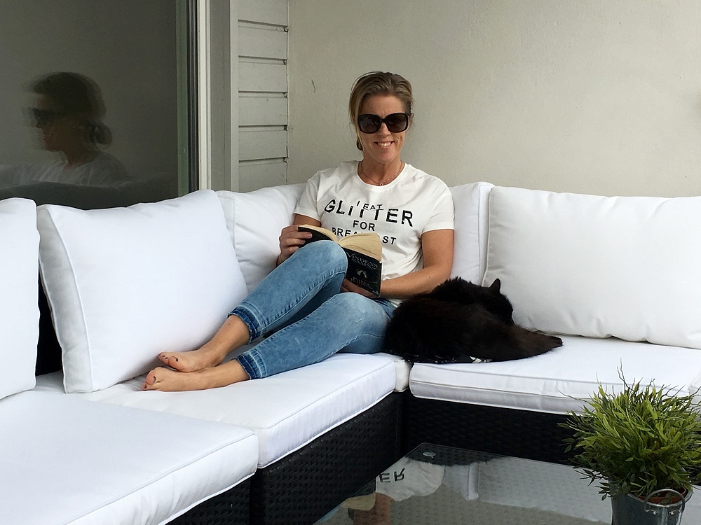 Skön soft dag här i dag men lite fix i trädgården, fått fram utemöblerna och en hel del läsande på balkongen i vårsolen. Har på mig sköna jeansen "OnlUltimate Reg" och tishan "NmKato".
