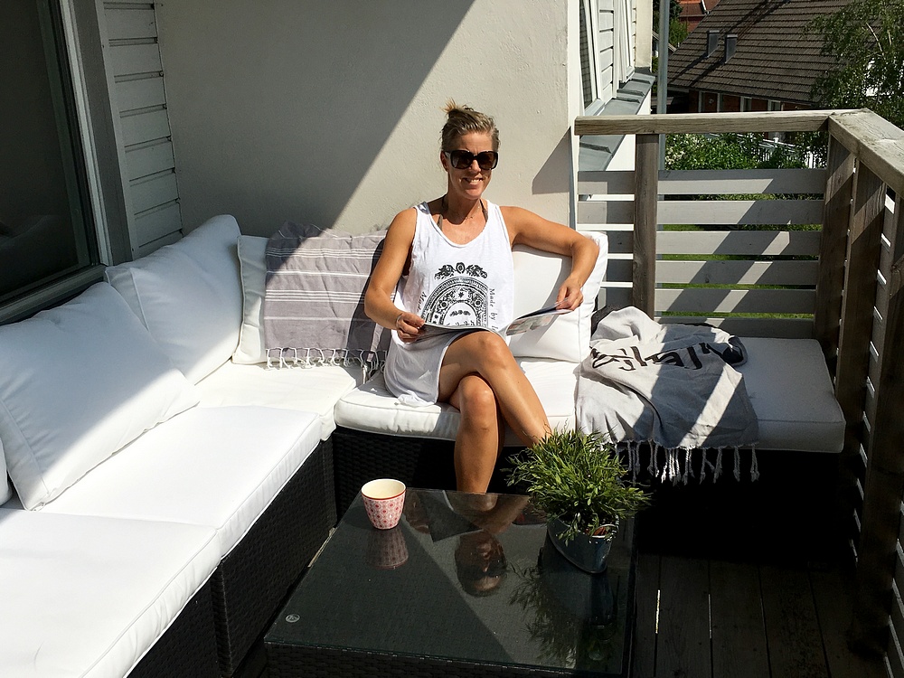 Ja lite Mors dag-firande blev det här på morgonen och nu njuter jag av solen på balkongen. Har på mig suveräna Ajlajk-tunikan som kommer användas flitigt i sommar, perfekt att bara dra på sig över bikini=)