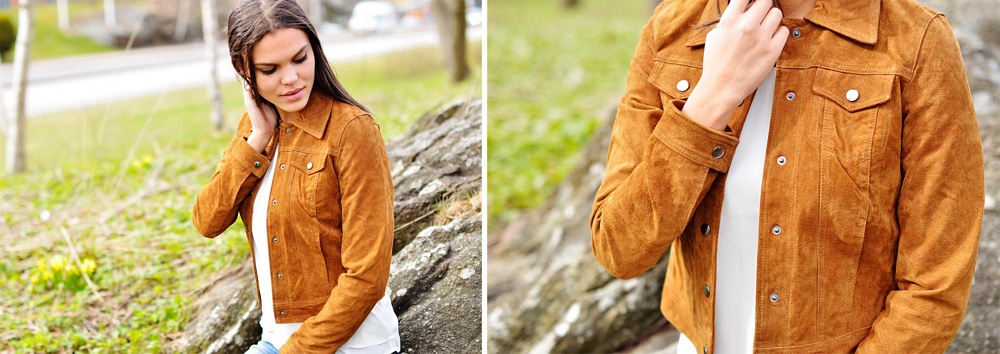 Här visar Amanda trendiga mockajackan Vmadona som vi har inne nu på webshoppen. Perfekt jacka nu i vår och sommar i riktigt mjuk fin mockakvalitet till kanonpriset 899 kr.