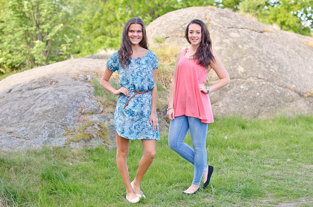 Härliga plagg till vår och somma rkommer det upp här i dag. * Elin har på sig storsäljaren "Viran" från Vila smo nu äntligen kommer i ärmlös modell. * Am,anda har på sig fina Soya-klänningen med tunna band som går i kryss över ryggen.