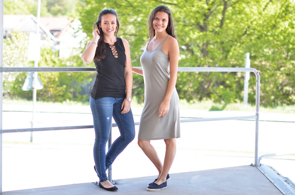 Ja härliga plagg som passar perfekt nu och hela sommaren kommer det upp här i dag. * Amanda har på sig fina Soya-klänningen "Markita" som kommer i två olika färgställningar nu. * Elin har på sig fina linnet "VmMolly" med spets över ryggen som kommer som synes och i en fin ljus nyans. Jeansen är ObjLiva som finns på webshoppen nu.