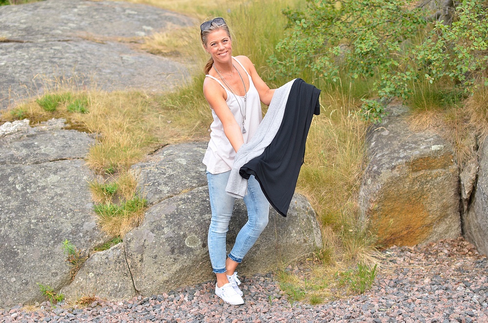 Jag har på mig sköna ankel-jeansen "OnlUltimate Reg", Ajaljk-linnet, halsbandet "S9619" och armbanden "BR07" och "BR022".
