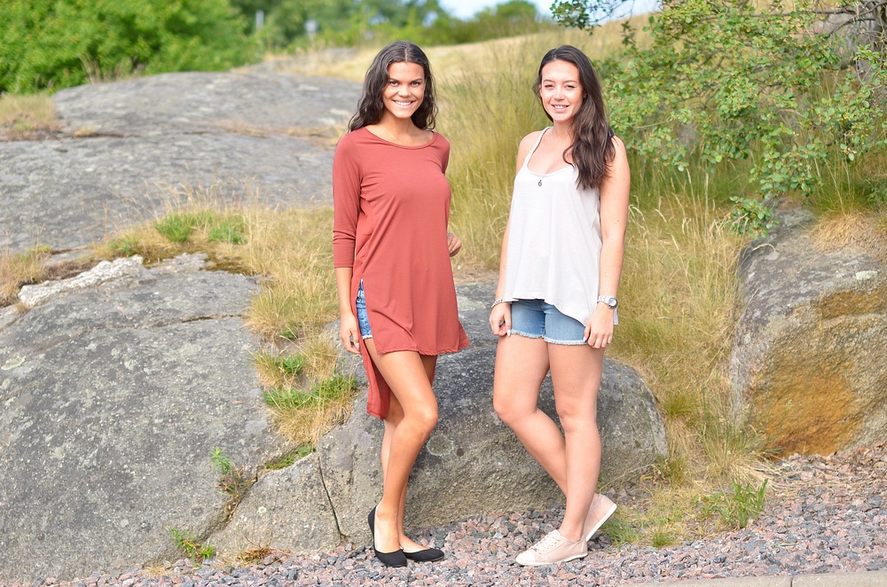 Här ser ni fina tunikan "JdyCone2 som Amanda har på sig, fin modell som är längre baktill med sprund på sidorna, perfekt nu med shorts under och självklart til både jeans och leggings. * Elin har på sig fina Ajlajk-linnet och sköna jeansshortsen som kommer upp i dag.