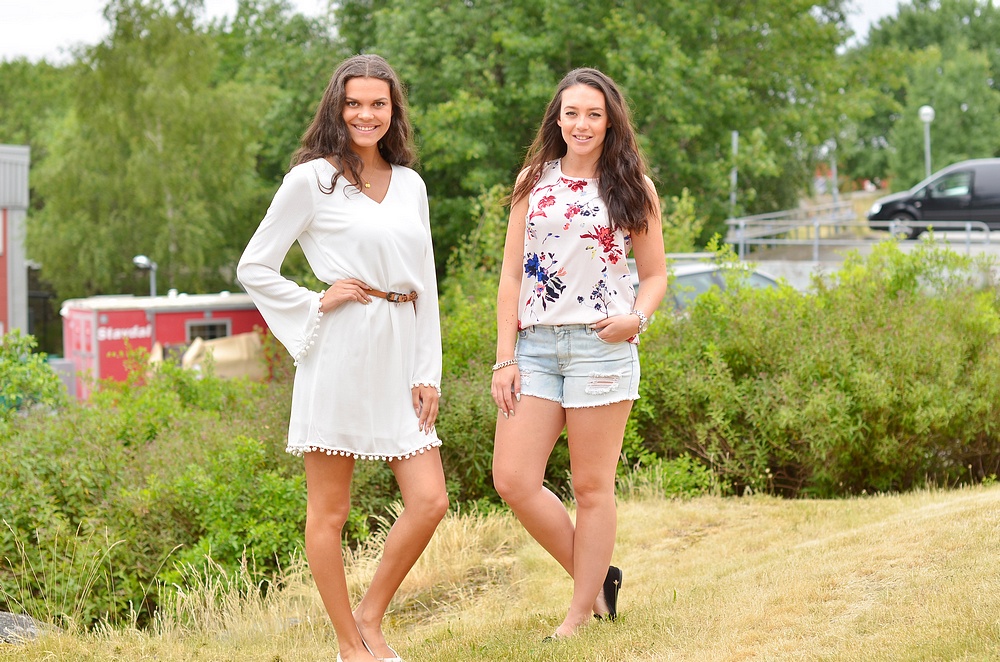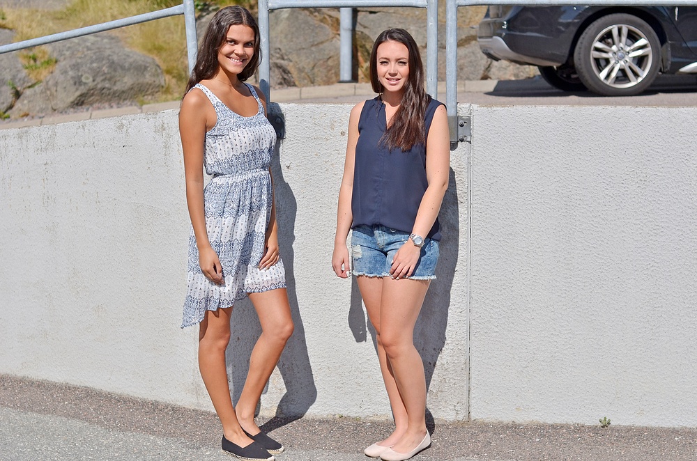 Ja härliga plagg till sommaren kommer det upp här i dag. * Amanda har på sig superfina klänningen med trumpetärm och nätt bollkant nertill som är såååå himla fin, kommer även i marin. Skärpet är fina "Haf Leather" * Elin har på sig fina linnet "Vmtea" som även kommer i enfärgat turkost, jeansshortsen är sköna modellen "PcJust Thilde".