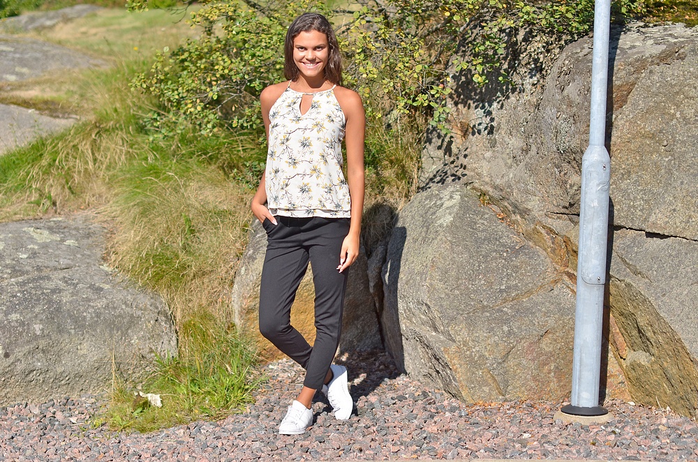 Jag har på mig supersköna "OnlPopTrash"-byxan i marin och grymma Vila-tishan "ViTold" som det nyligen kommit påfyllning av.