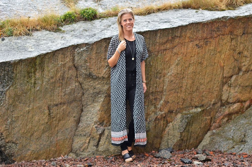 Jag har på mig nya fina långa kimonon som kom i går och kneecut-jeansen "OnlRoyal" som jag verkligen rekommenderar.