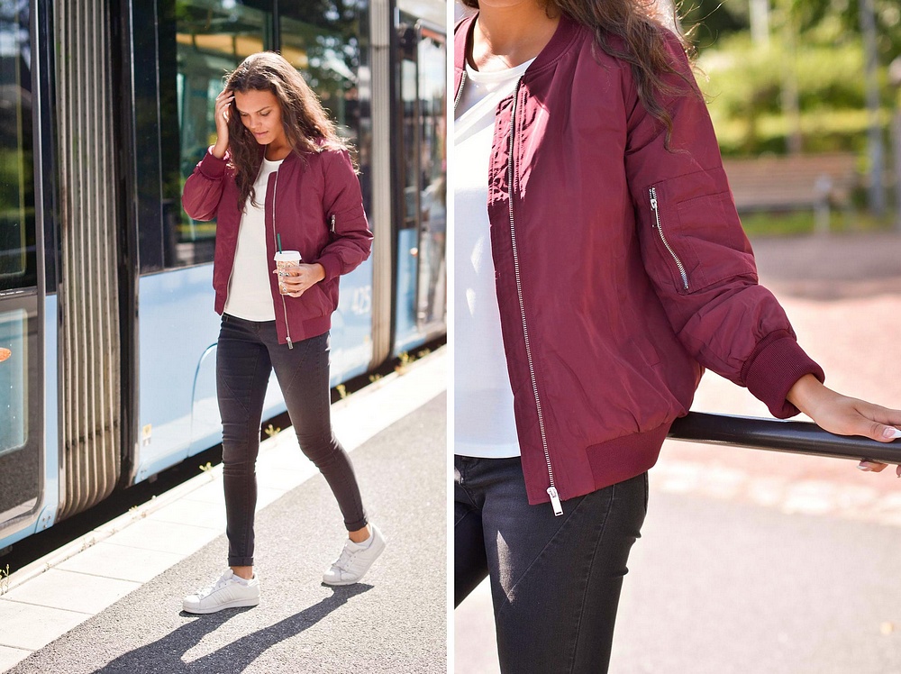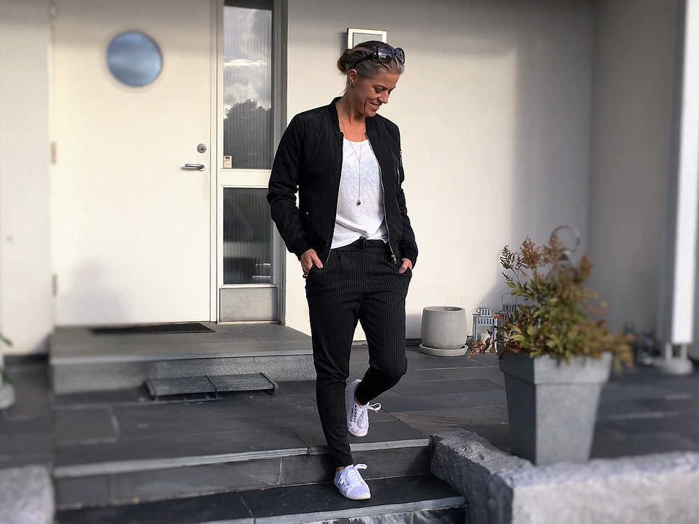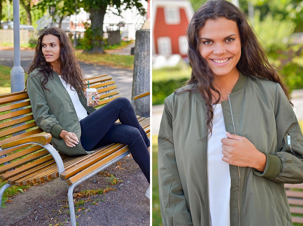 Ja Vilas suveräna bomberjacka "ViConcrete" finns i både lång och kort modell (jag har bägge modellerna själv då detta är en riktig favvomodell). Fördelen med den här är att den är skönt lite tjockare fodrad och man har plats med tröja under så man kan verkligen ha den här jackan långt in i höst. Snyggt med den breda ribbade mudden nertill också som sticker ut och skiljer sig från de vanliga bomberjackorna. Jeansen här är storsäljaren "NmEve" och toppen fina modellen